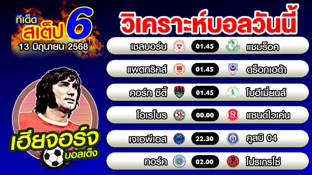 วิเคราะห์บอลวันนี้ ทีเด็ดบอลเต็ง บอลสเต็ป 6 [13 มิถุนายน 2568]เฮียจอร์จ บอลเต็ง