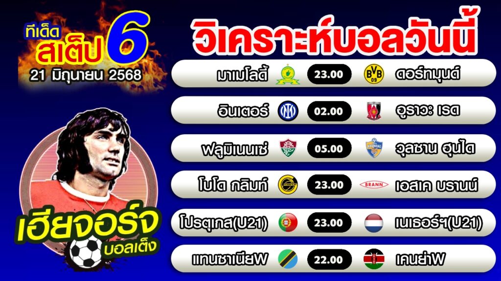 วิเคราะห์บอลวันนี้ บอลสเต็ป 6 [21 มิถุนายน 2568]เฮียจอร์จ บอลเต็ง