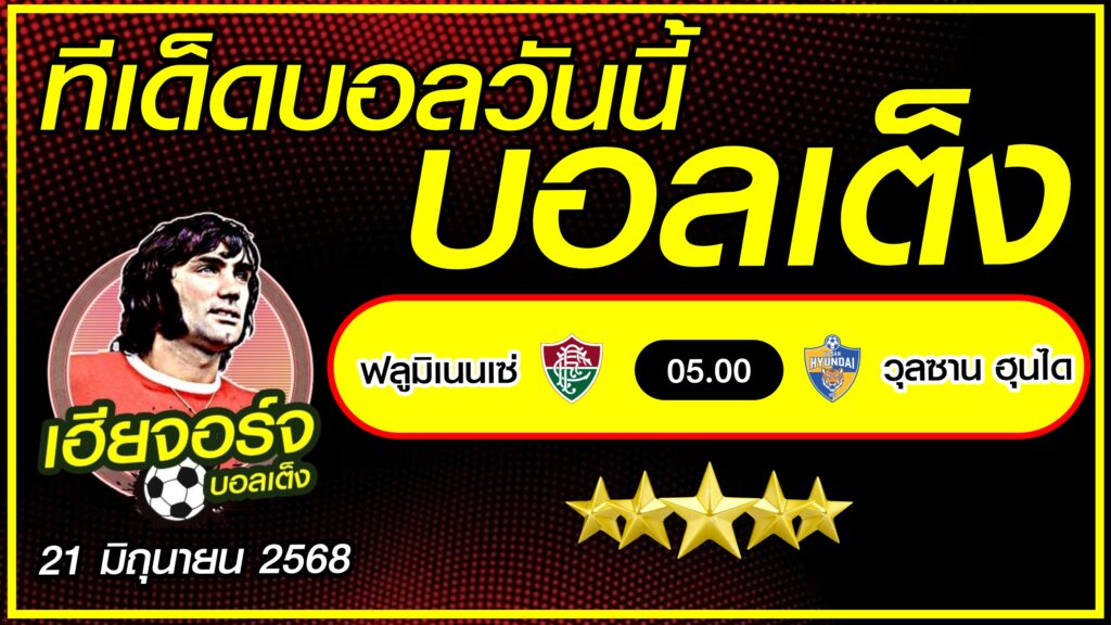 ทีเด็ดบอลสเต็ป วิเคราะห์บอลวันนี้ [ 21 มิ.ย. 68] เฮียชายบอลสเต็ป