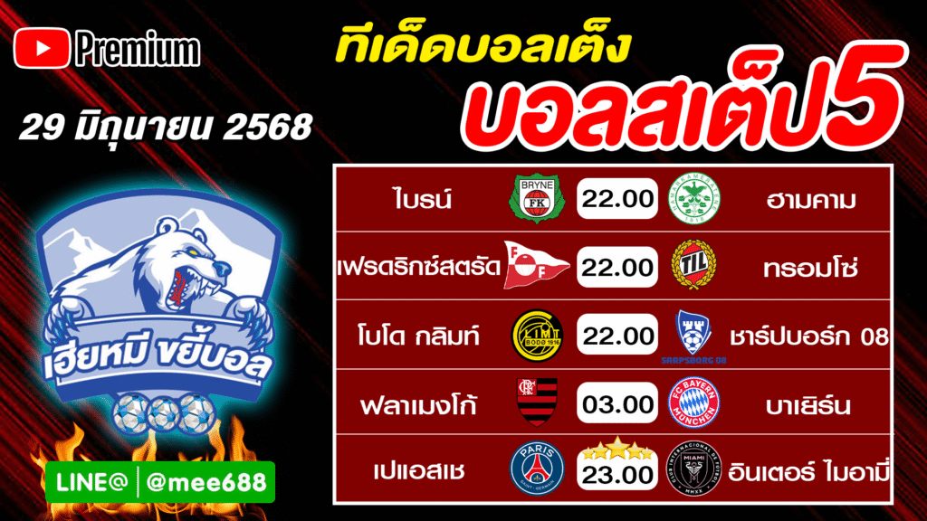 ทีเด็ดบอลรับทรัพย์ บอลเต็ง ทีเด็ดบอลสเต็ป วันที่ 29 มิถุนายน 2568