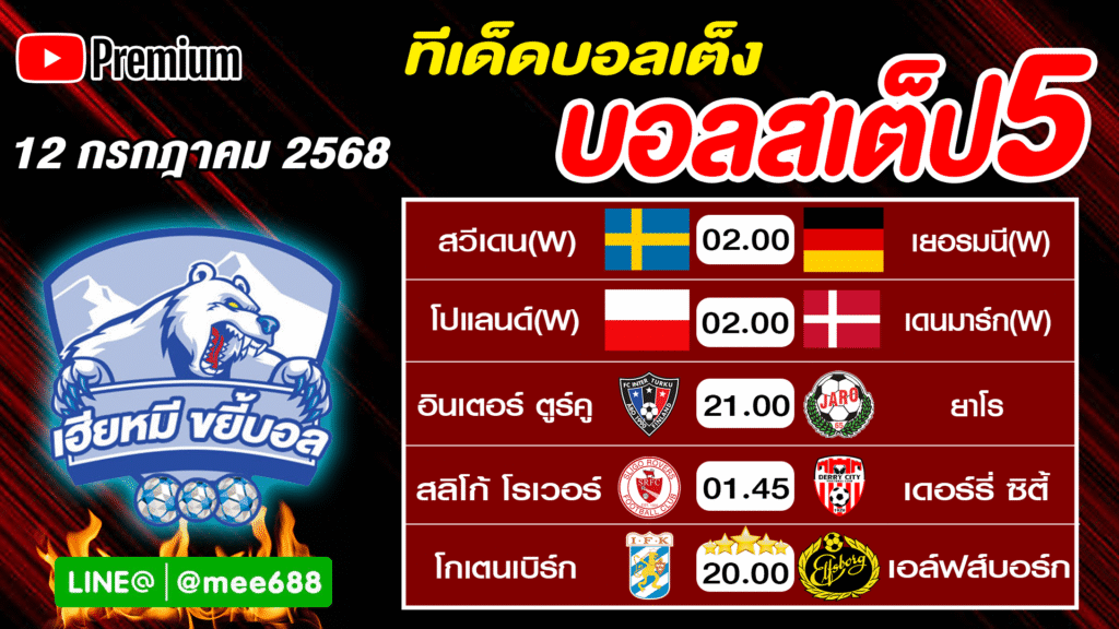 ทีเด็ดบอลรับทรัพย์ บอลเต็ง ทีเด็ดบอลสเต็ป วันที่ 12 กรกฎาคม 2568แ