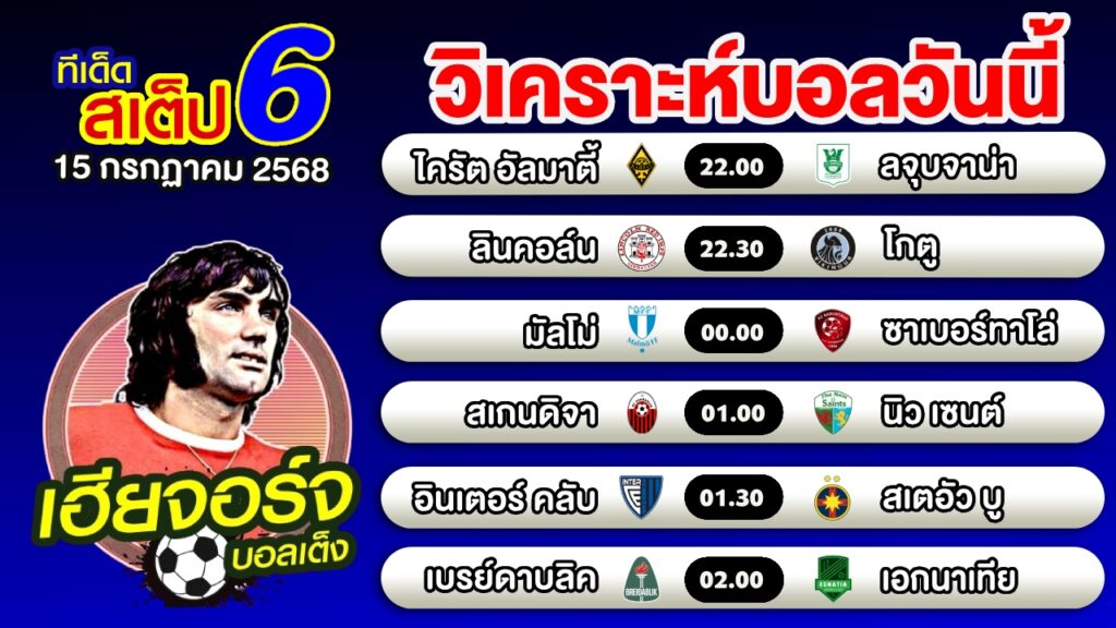 วิเคราะห์บอลวันนี้ ทีเด็ดบอลเต็ง บอลสเต็ป 6 [15 กรกฏาคม 2568]เฮียจอร์จ บอลเต็ง