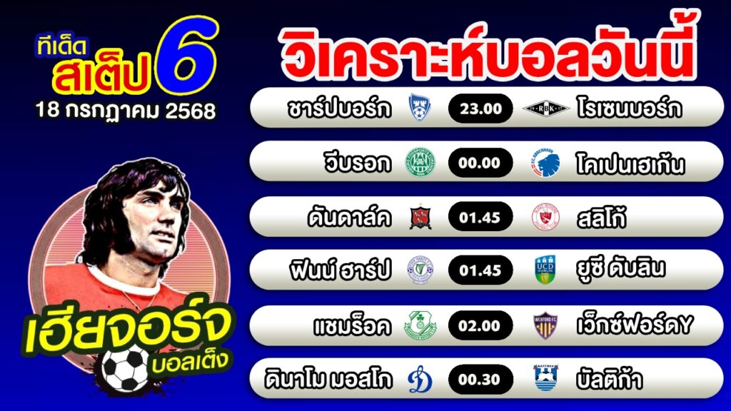 วิเคราะห์บอลวันนี้ ทีเด็ดบอลเต็ง บอลสเต็ป 6 [18 กรกฏาคม 2568]เฮียจอร์จ บอลเต็ง