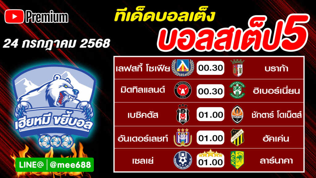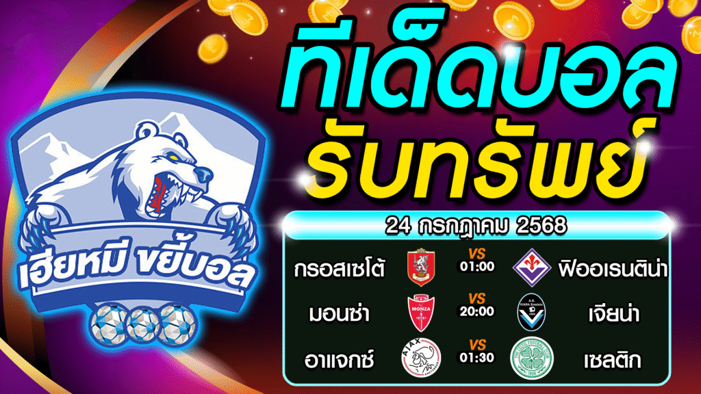 ทีเด็ดบอลรับทรัพย์ บอลเต็ง ทีเด็ดบอลสเต็ป วันที่ 24 กรกฎาคม 2568