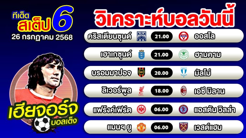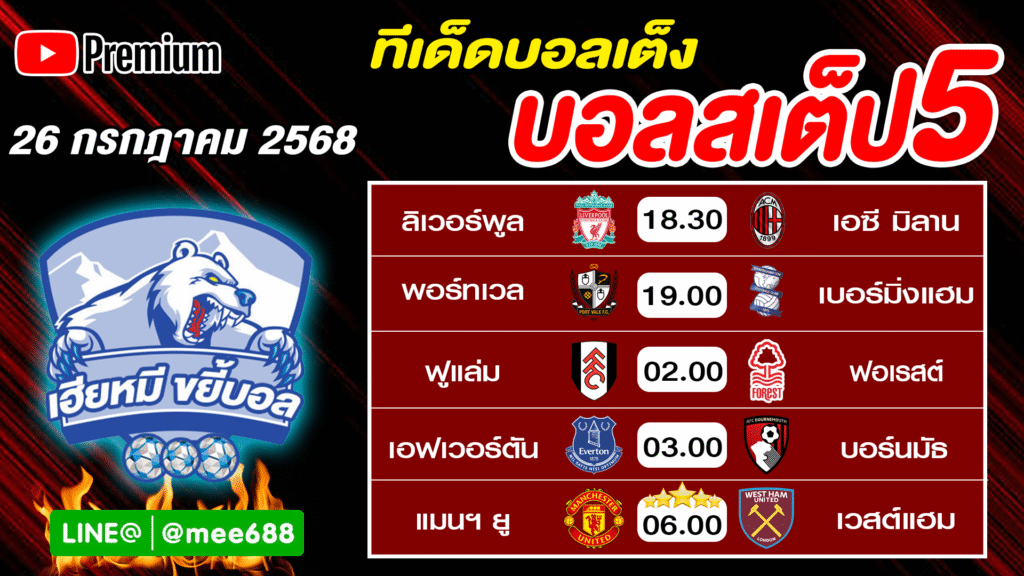 ทีเด็ดบอลสเต็ป วิเคราะห์บอลวันนี้ [ 26 ก.ค. 68 ] เฮียชายบอลสเต็ป