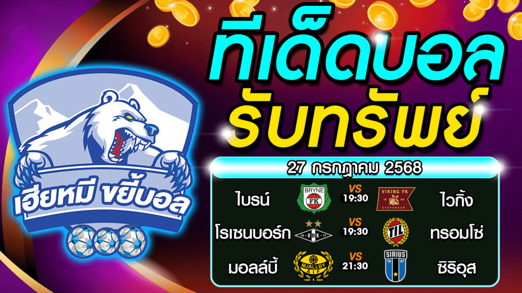 ทีเด็ดบอลรับทรัพย์ บอลเต็ง ทีเด็ดบอลสเต็ป วันที่ 27 กรกฎาคม 2568
