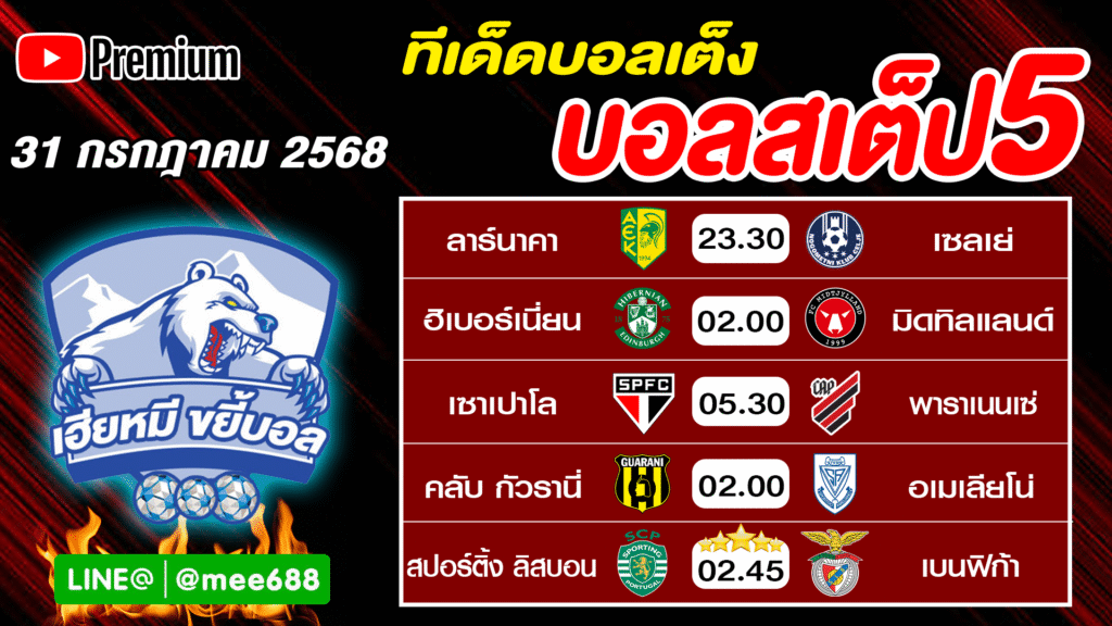 ทีเด็ดบอล บอลสเต็ป ทีเด็ดบอลรับทรัพย์ 31 กรกฎาคม 2568 เฮียหมี ขยี้บอล