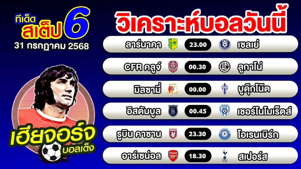 วิเคราะห์บอลวันนี้ ทีเด็ดบอลเต็ง บอลสเต็ป 6 [31 กรกฏาคม 2568]เฮียจอร์จ บอลเต็ง