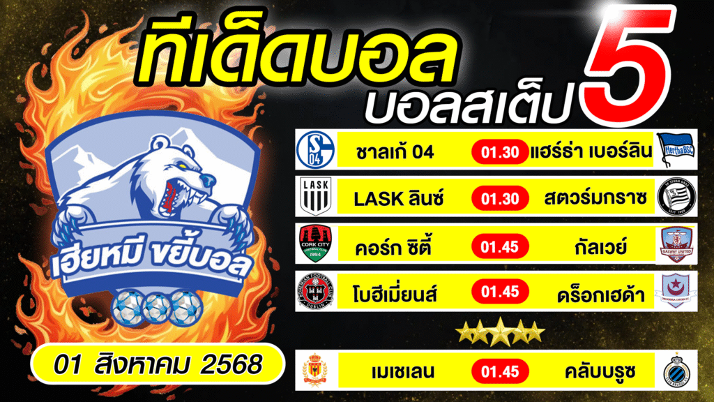 วิเคราะห์บอล ทีเด็ดบอลเต็ง บอลสเต็ป5 [ 1 สิงหาคม 2568 ] เฮียหมี ขยี้บอล