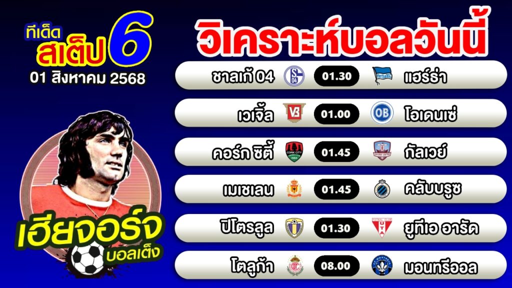 วิเคราะห์บอลวันนี้ ทีเด็ดบอลเต็ง บอลสเต็ป 6 [01 สิงหาคม 2568]เฮียจอร์จ บอลเต็ง